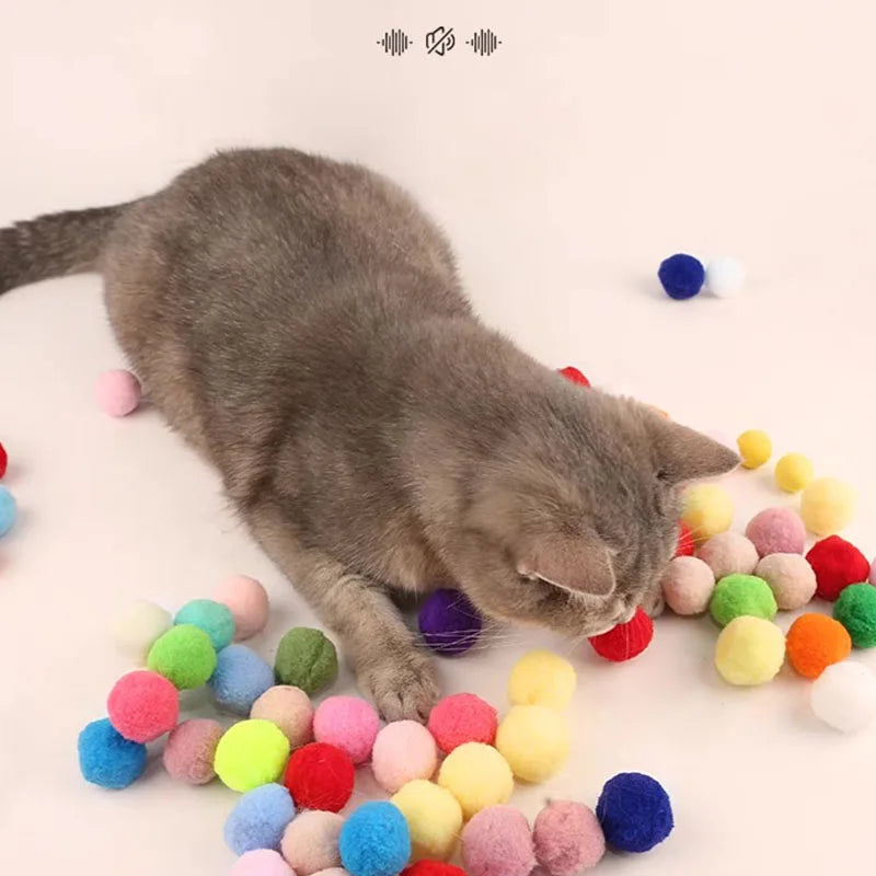 Our plush pom pom balls are colorful and lightweight.  You can make your own cat ball toys and cat necklace accessories.  You can also use them to make holiday decorations on special days.